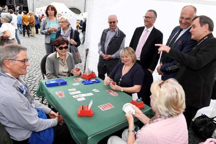 Die Bridgespieler von Bourges und Augsburg feiern die deutsch-französische Freundschaft