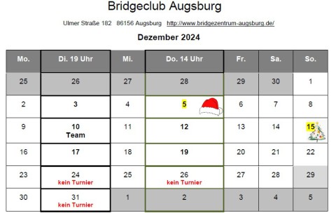 Donnerstag, 5.12., 14:00     Nikolausturnier, Ziehturnier, Meldeliste